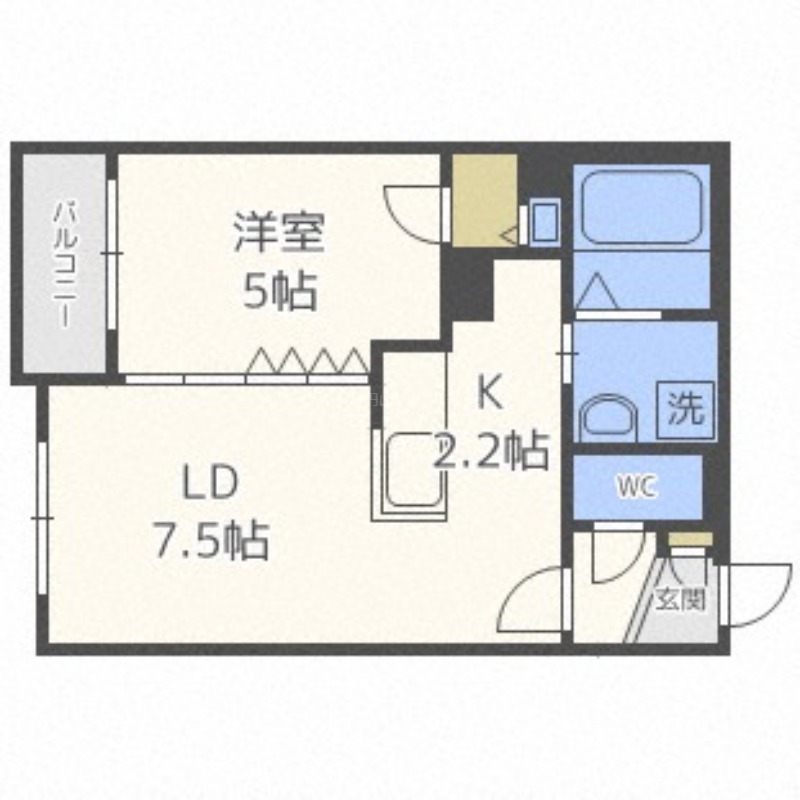 | 間取り詳細 | LD 7.5畳 、 洋室 5畳 、 K 2.2畳 |