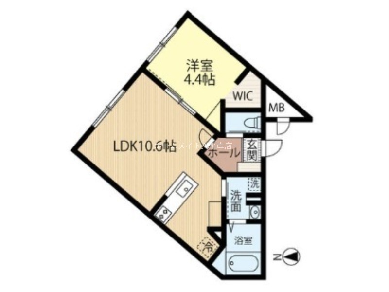 | 間取り詳細 | LDK 10.6畳 、 洋室 4.4畳 |