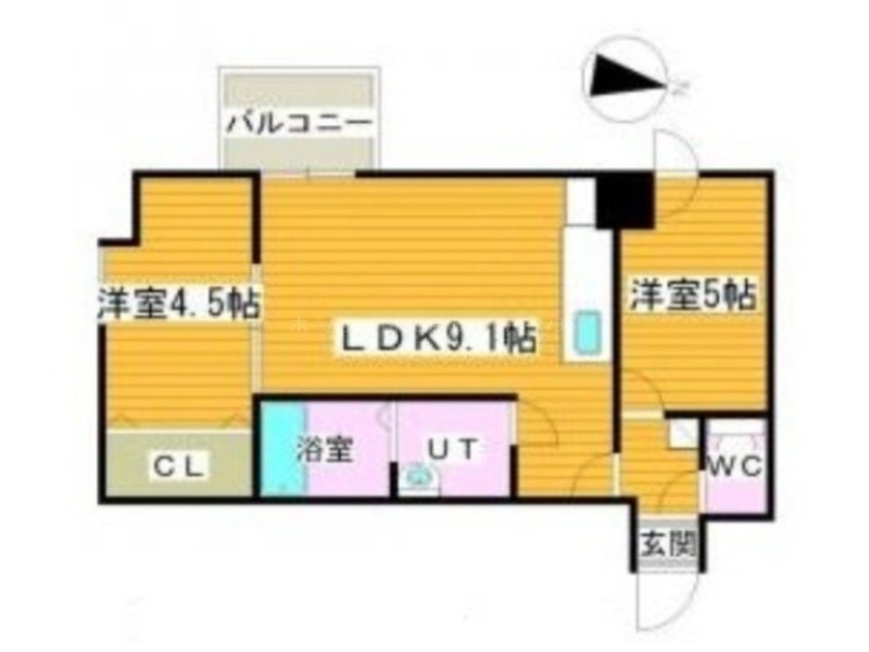 | 間取り詳細 | DK 9.1畳 、 洋室 5畳 、 洋室 4.5畳 |