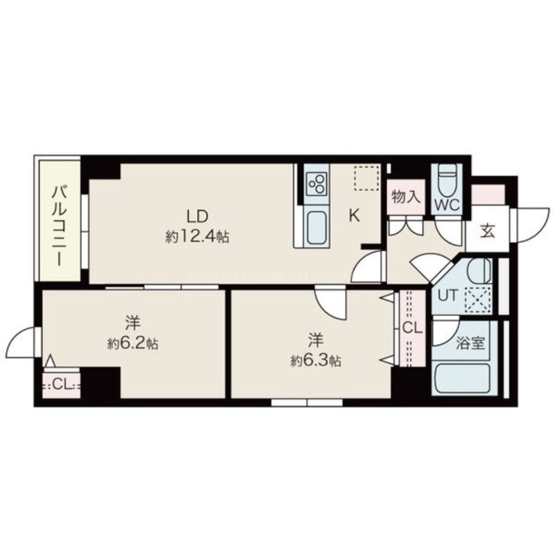| 間取り詳細 | LDK 12.5畳 、 洋室 6.3畳 、 洋室 6.2畳 |