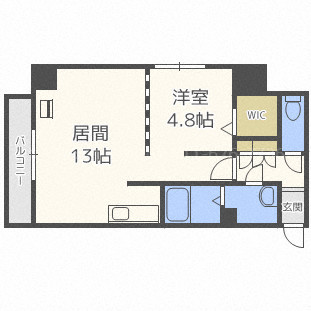 | 間取り詳細 | LDK 13畳 、 洋室 4.8畳 |