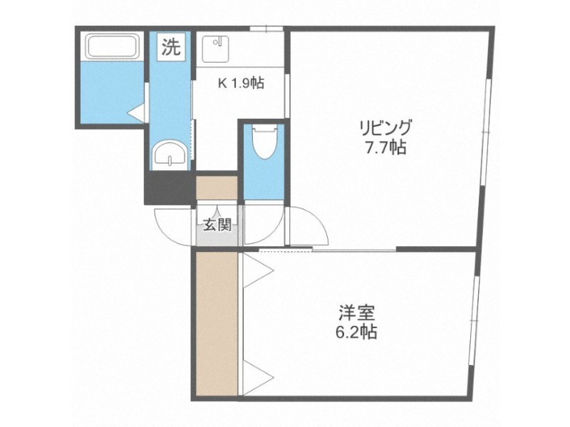| 間取り詳細 | DK 9.6畳 、 洋室 6.2畳 |