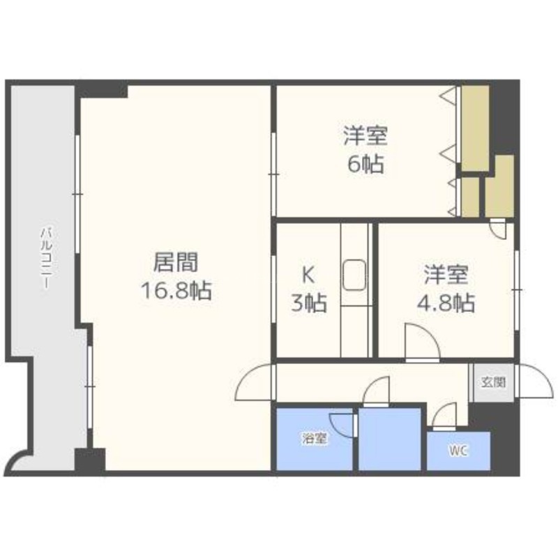 | 間取り詳細 | LD 16.8畳 、 K 3畳 、 洋室 4.8畳 、 洋室 6畳 |