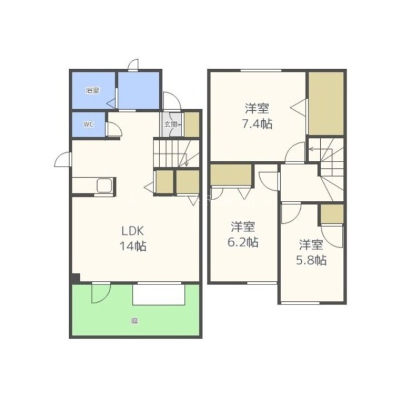 | 間取り詳細 | LDK 14畳 、 洋室 7.4畳 、 洋室 6.2畳 、 洋室 5.8畳 |