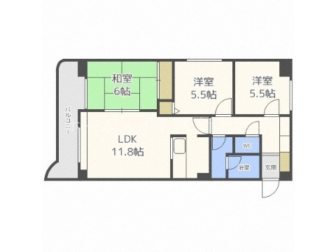 洋室 5.5畳 洋室 5.6畳 LDK 11.8畳 |