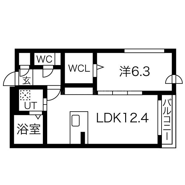| 間取り詳細 | LDK 12.4畳 、 洋室 6.3畳 |