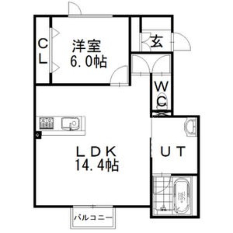 | 間取り詳細 | LDK 14.4畳 、 洋室 6畳 |
