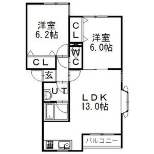 | 間取り詳細 | LDK 13畳 、 洋室 6.2畳 、 洋室 6畳 |