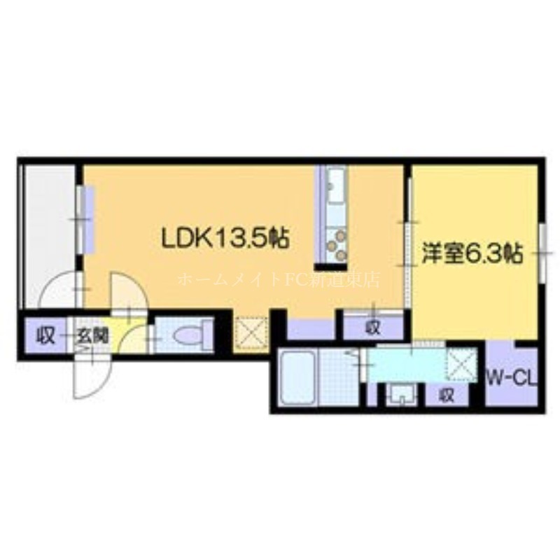 | 間取り詳細 | LDK 13.5畳 、 洋室 6.3畳 |