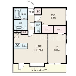 | 間取り詳細 | LDK 11.7畳 、 洋室 6畳 、 洋室 5.4畳 |
