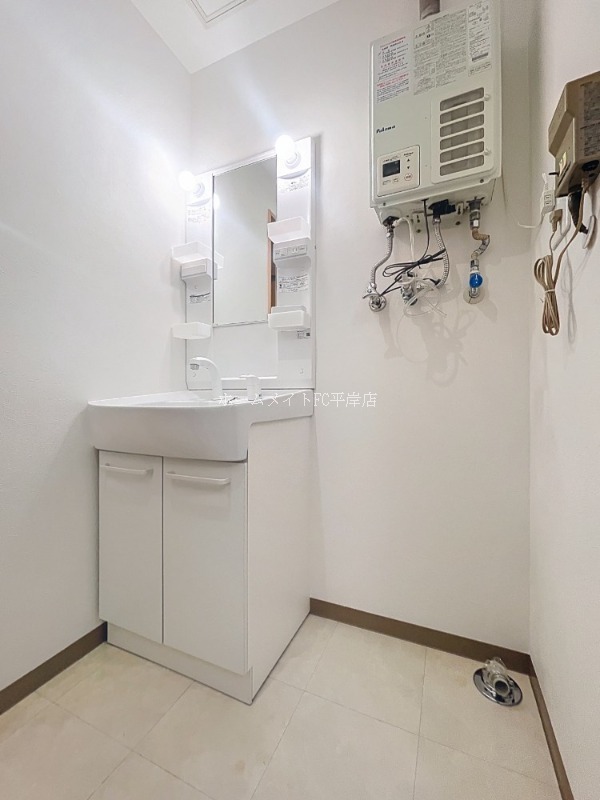 | 設備 | ガス(プロパン)、管理形態(巡回)、24時間緊急対応、インターホン(TVモニター付き)、角部屋、フローリング、全居室フローリング、収納スペース、クローゼット、クローゼット数(1)、玄関収納、下駄箱、バス・トイレ別(別室)、シャワー、脱衣所、給湯、ウォシュレット、洗面台、洗面所独立、シャンプードレッサー、洗面所にドア、洗濯機置き場(室内)、コンロ設置済、コンロ口数(2)、コンロ種類(プロパン)、グリル、システムキッチン、暖房のみ、暖房種類(石油)、24H換気システム、BS、CS、地デジ(UHF)、光ファイバー | ||