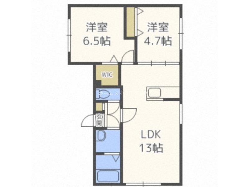 | 間取り詳細 | LDK 13畳 、 洋室 6.5畳 、 洋室 4.7畳 |