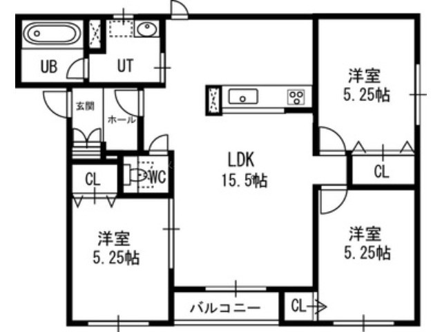 | 間取り詳細 | LDK 15.5畳 、 洋室 5.25畳 、 洋室 5.25畳 、 洋室 5.25畳 |